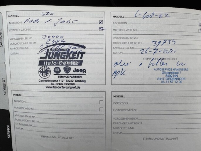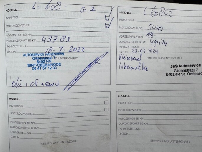 Onderhoudsboekjes: Aanwezig