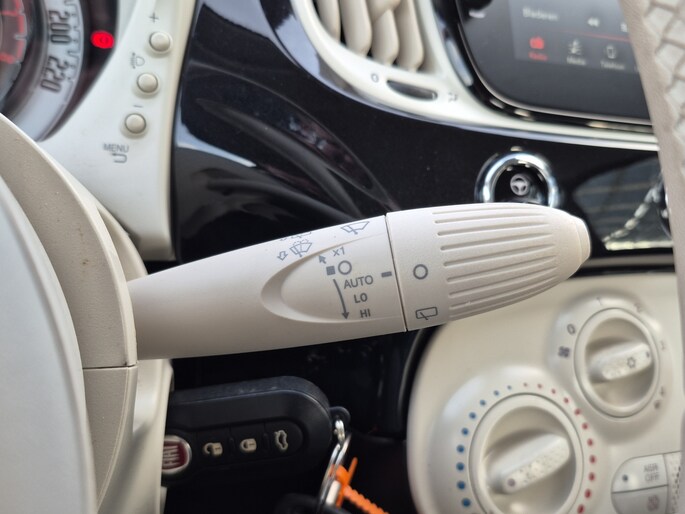 Omdat rijden een plezier mag zijn, staat deze Fiat 500 enthousiast te glimmen in de showroom. Technisch in topconditie, strak in de lak... echt een droomauto! De auto heeft een opmerkelijk lage kilometerstand van slechts 27469 Zijn pittige prestaties dankt deze auto aan zijn compacte en zuinige motor. Bij de uitrusting van deze auto horen onder meer 15 inch lichtmetalen velgen, LED-dagrijverlichting, in delen neerklapbare achterbank en snelheidsafhankelijke stuurbekrachtiging. De sensoren van de achteropkomend verkeer waarschuwing houden zicht op de dode hoeken achter u. Te weinig afstand tot de achterligger? Het systeem geeft direct een signaal. Niet meer op de tast een andere zender zoeken of het volume aanpassen. En al helemaal niet met uw ogen van de weg af raken. De audiobediening op het stuur zorgt dat u alles van onder uw vingers regelt. De DAB-ontvanger zorgt voor een ruime keuze uit digitale radiozenders en een kristalheldere geluidsweergave. Geen parkeervak is te klein dankzij de assistentie van de parkeersensoren. Zuinig zoeven, dat kan deze auto dankzij de aanwezige cruise control. U bent in deze Fiat ook voorzien van airconditioning, lederen stuur en centrale deurvergrendeling met afstandsbediening. In de Fiat 500 heeft uw veiligheid en die van uw omgeving prioriteit. Deze Fiat 500 is voorzien van Brake Assist, die extra remkracht geeft bij een noodstop. We laten u graag een proefrit maken, neemt u contact met ons op?
