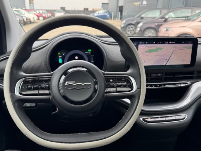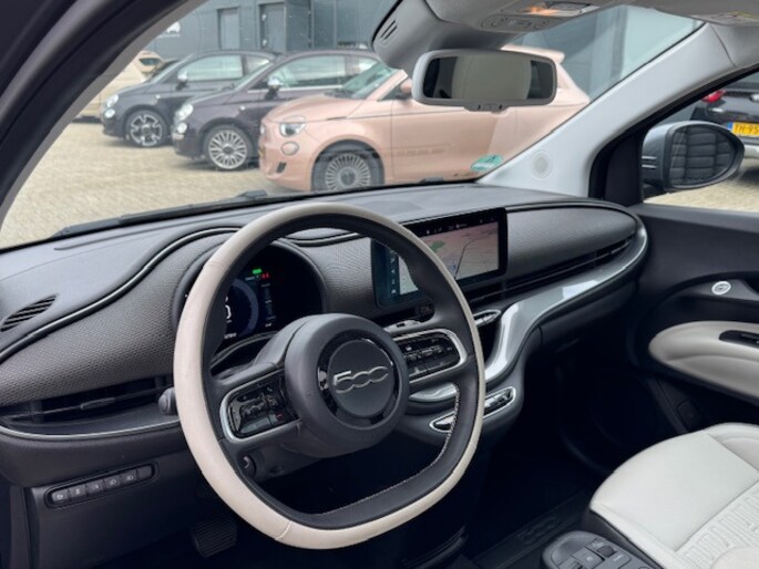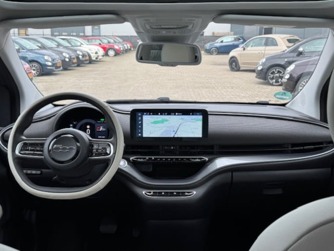 Dure benzine? Terugleverkosten voor zonnepanelen? Géén probleem met deze volledig elektrische Fiat 500 La Prima! Benzine verbruikt-ie niet. En met de door de zonnepanelen opgewekte elektriciteit weet deze auto wel raad - daarmee rijdt hij fluisterstil zijn dagelijkse kilometers. De La Prima is ook nog eens de meest luxe elektrische Fiat met een sublieme uitrusting en het grote accupakket van 42 kWh. Deze auto heeft nog geen 21.000 km op de teller. Zo koop je dus een super-de-luxe en bijna nieuwe auto voor de prijs van een tweedehandsje.
