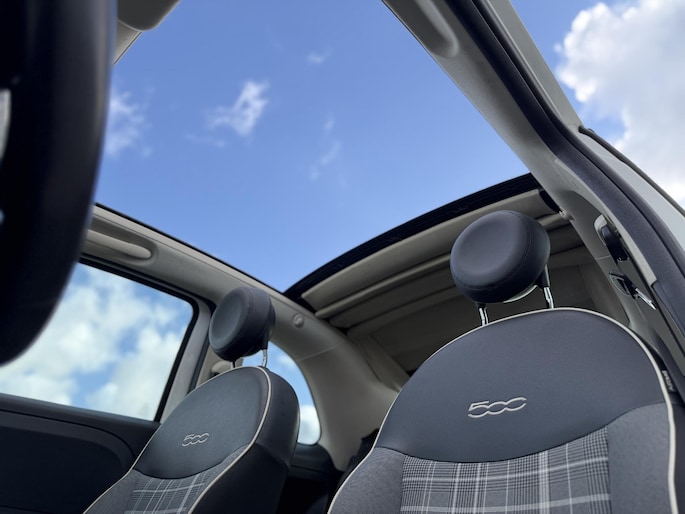 Zoals u mag verwachten van deze Fiat 500 C is hij uitgerust met een reeks aan actieve veiligheidssystemen. Wegrijden op een helling is kinderspel met hill hold control. Deze functie houdt de handrem automatisch vast op een steile ondergrond.