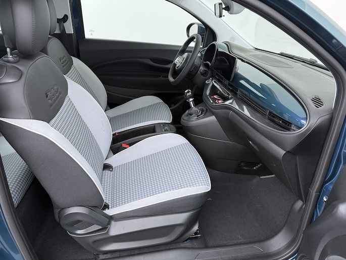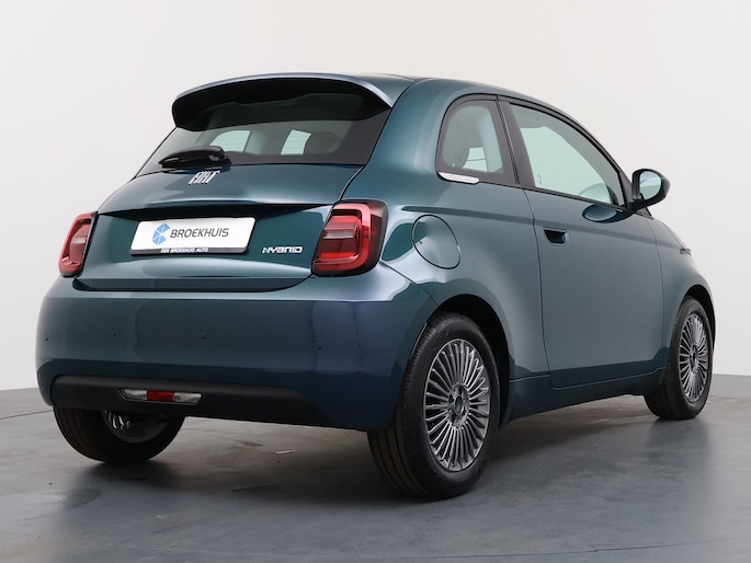 Het pure karakter van een Italiaanse auto herken je altijd. Kijk maar naar deze Fiat 500. Deze gloednieuwe wagen is onmiddellijk uit voorraad leverbaar. Het zal niet lang meer duren totdat benzinerijden uit de tijd is. Maar voor nu is dit de beste oplossing: een combi van elektrisch en brandstof, met een hybride motor. Bij de uitrusting van deze Fiat horen onder meer 16 inch lichtmetalen velgen, LED-dagrijverlichting en LED-achterlichten. De automatische airconditioning zorgt onder alle omstandigheden voor een prettige temperatuur. Geen parkeervak is te klein dankzij de assistentie van de parkeersensoren. Het drukke verkeer eist onderweg al uw aandacht op. Daarom is het goed dat deze Fiat is voorzien van diverse systemen die u assisteren tijdens de rit. Een automatisch inschakelbare verlichting neemt het waar als het donker wordt of gaat schemeren, en schakelt dan automatisch de verlichting in. Op dezelfde manier "ziet" de regensensor de eerste spatjes regen en schakelt dan de ruitenwissers in, en als het harder gaat regenen zet hij de ruitenwissers ook in een snellere stand. Met de cruise control kunt u zorgen dat u op die rechte stukken toch uit beeld blijft bij de flitsers. Met de keyless start is het lekker makkelijk instappen en starten. Elektronische veiligheidsvoorzieningen helpen u onderweg om de situatie op de weg te beoordelen. Deze systemen waarschuwen u als er een riskante situatie ontstaat, en kunnen in bepaalde gevallen ook zelf ingrijpen. De camera van de verkeersborddetectie herkent verschillende soorten verkeersborden en toont deze op het dashboard. In deze Fiat vinden we verder een esc met asr, msr, hba en hill hold functie en bandenspanningcontrolesysteem. Wij leveren deze nieuwe auto met volledige fabrieksgarantie. Maak nu snel een afspraak om deze auto te bekijken.