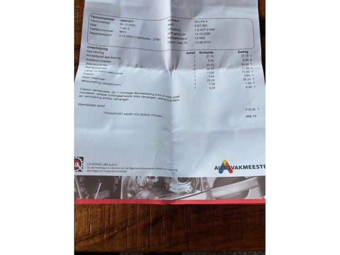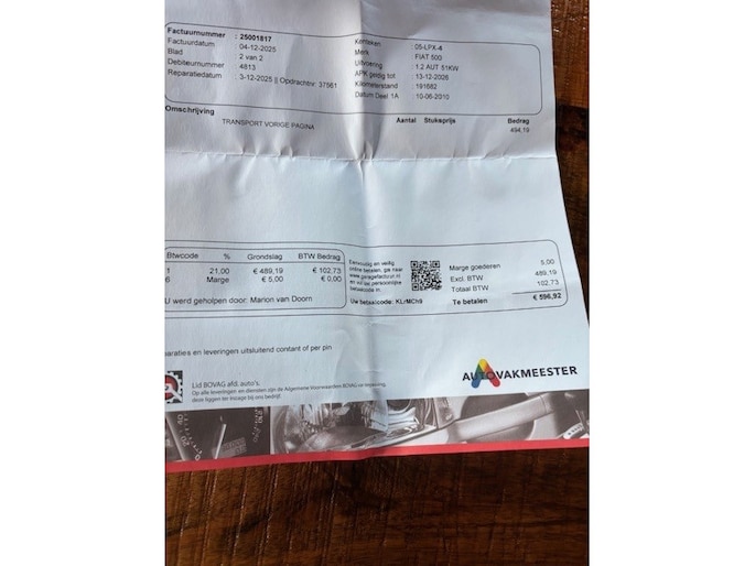 04-12-2025 bij 191.662 km remcilinders en remschoenen set achter vervangen ( zie Factuur)