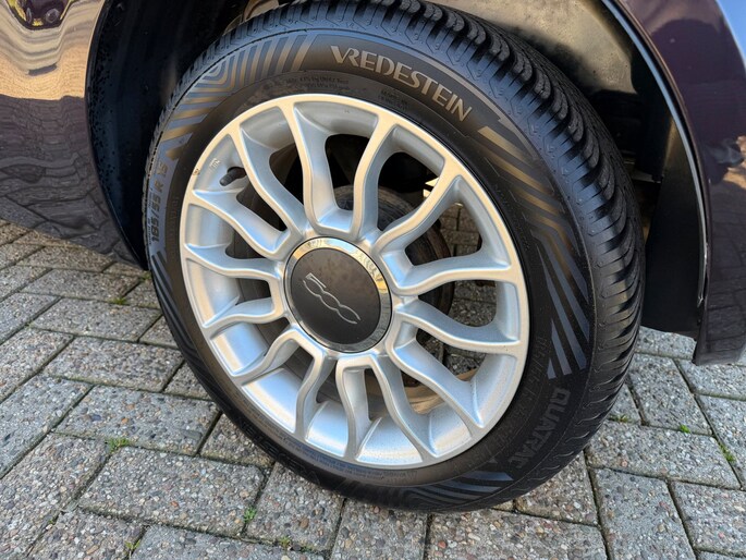 Italiaanse auto's verloochenen hun identiteit niet. Dat geldt ook voor deze Fiat 500 C. De aandrijving van deze Fiat wordt verzorgd door een viercilinder motor en een automatische transmissie. Vergezichten krijgen een extra dimensie door het glazen panoramadak. Ook 15 inch lichtmetalen velgen, LED-dagrijverlichting, getint glas en in delen neerklapbare achterbank horen tot de voorzieningen op deze auto.