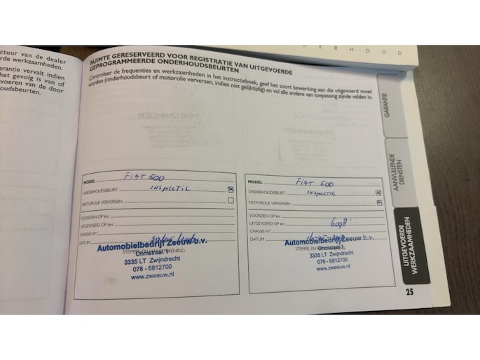 Onderhoudsboekjes: Aanwezig