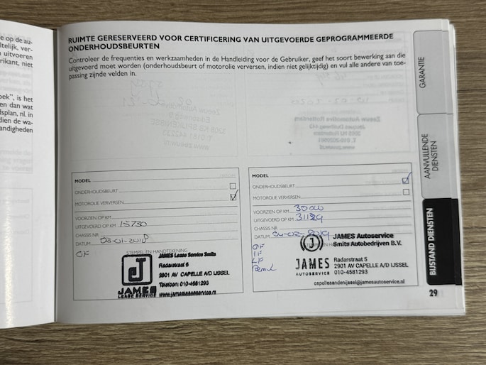 Onderhoudsboekjes: Aanwezig