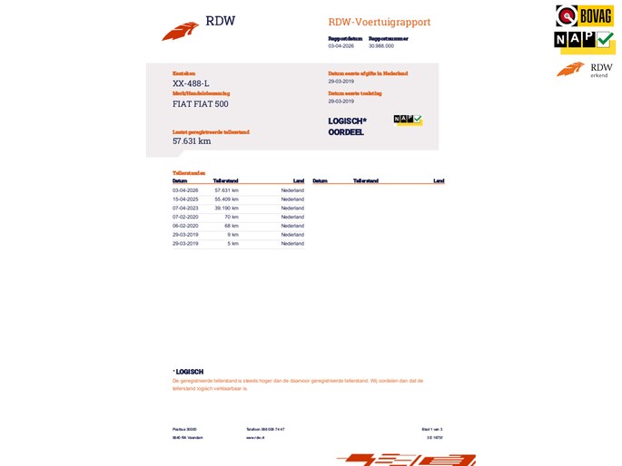 Kilometerstand gecontroleerd