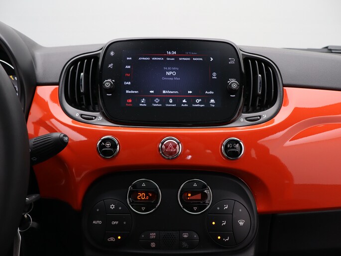 Dit is een auto die is ontworpen voor uw comfort. Deze Fiat 500 van het bouwjaar 2024 heeft 31556 kilometer op de teller staan. Met zijn pittige benzinemotor stuurt u deze auto gemakkelijk en vlot door het verkeer. Het glazen panoramadak laat meer licht binnen in het interieur en zorgt voor een magnifiek uitzicht naar buiten. Ook 15 inch lichtmetalen velgen, LED-dagrijverlichting, in delen neerklapbare achterbank en snelheidsafhankelijke stuurbekrachtiging zijn aan boord. Snelheid, brandstofinfo, noem maar op. Het digitale dashboard houdt u permanent op de hoogte. Goed en overzichtelijk. Met automatische airconditioning hoeft u alleen de gewenste temperatuur in te stellen. Het systeem doet de rest. Andere zender, andere muziek, meer volume? Met de audiobediening op het stuur is het makkelijk en veilig geregeld. Met de DAB-ontvanger luistert u naar glasheldere digitale radio. Inparkeren zonder angst voor schade. De parkeersensoren helpen u om moeiteloos in de kleinste parkeervakken te manoeuvreren. Wat u ook in deze auto kunt vinden zijn cruise control, centrale portiervergrendeling, boordcomputer en verstelbaar stuur. Aan boord van deze Fiat houden verschillende geavanceerde systemen voor u de weg in de gaten. Ze waarschuwen u voor noodsituaties en kunnen in een aantal gevallen ook zelf ingrijpen. Minder remweg, meer veiligheid: de Brake Assist haalt het beste uit het remsysteem als het erop aankomt. Nieuwsgierig? Bel of mail ons nu voor een proefrit.