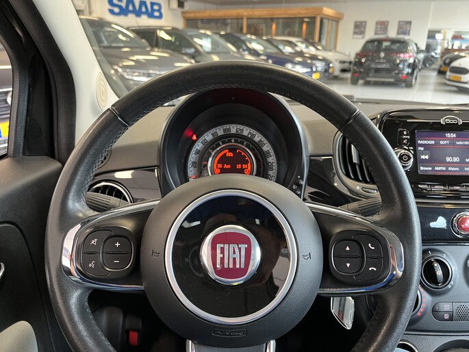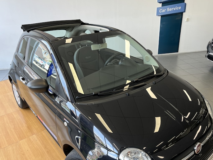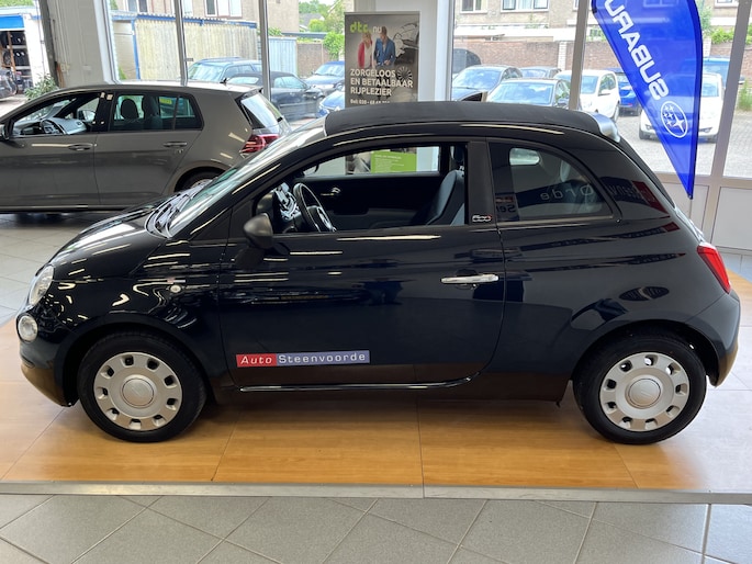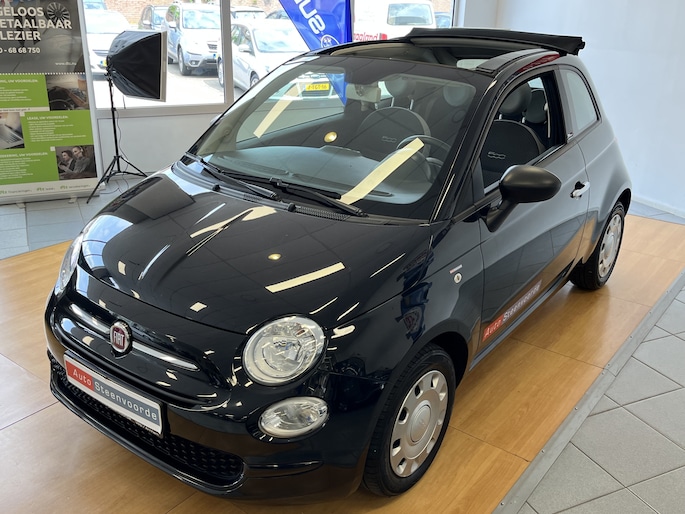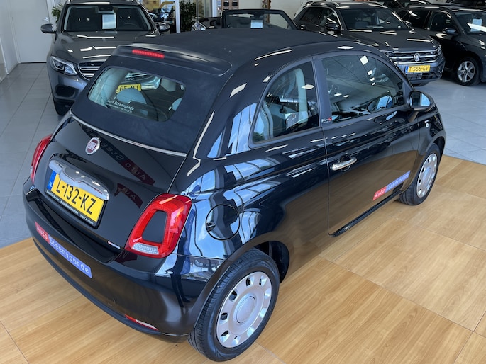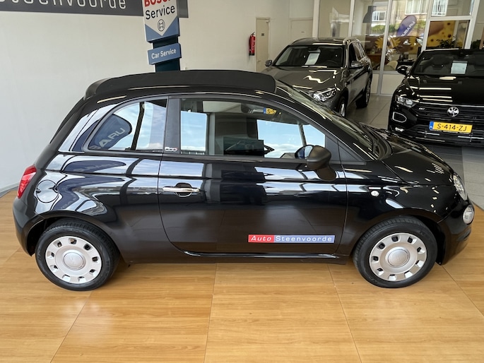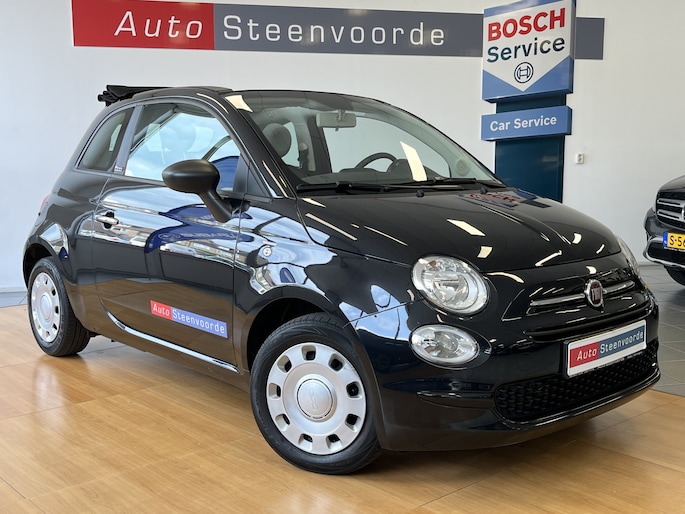 Welkom bij Autobedrijf Steenvoorde, leuk dat je kijkt naar onze mooie Fiat 500 Cabrio in de vrij weinig voorkomende kleur zwart (NERO SCORPIONE) .