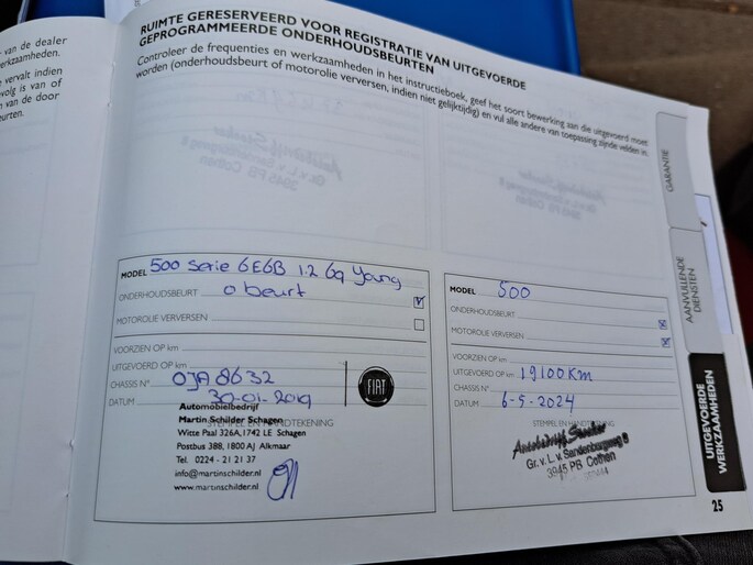 Onderhoudsboekjes: Aanwezig
