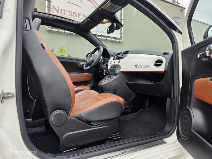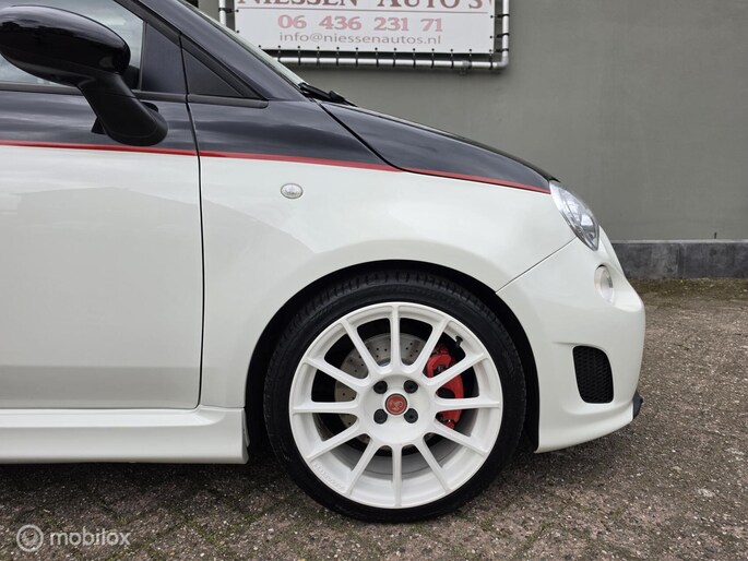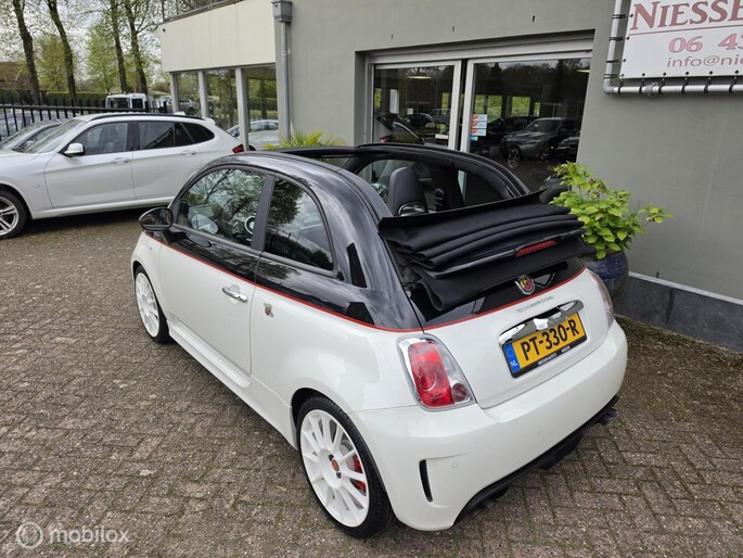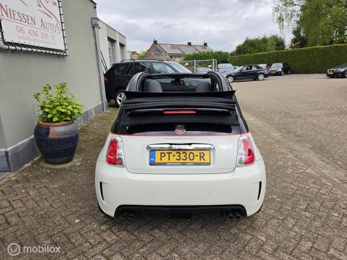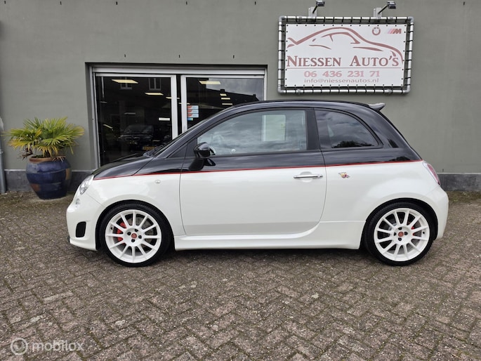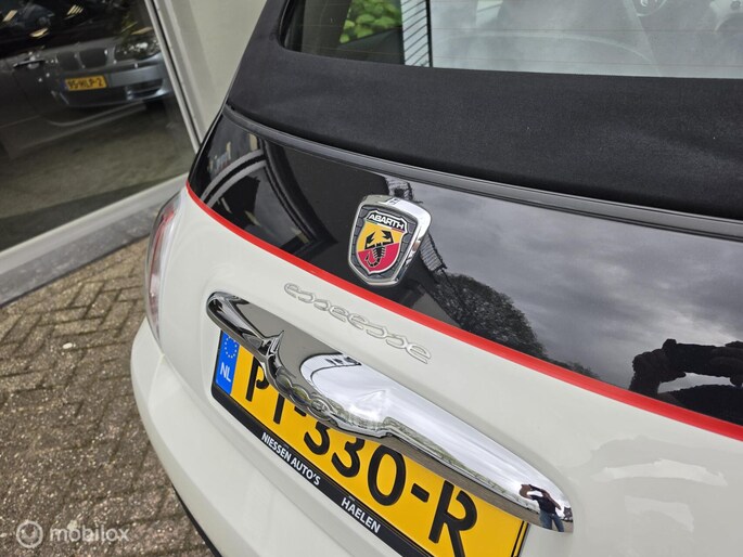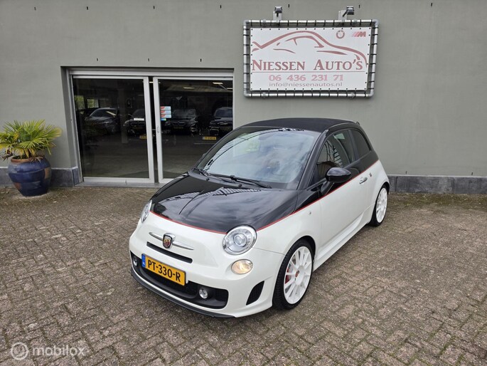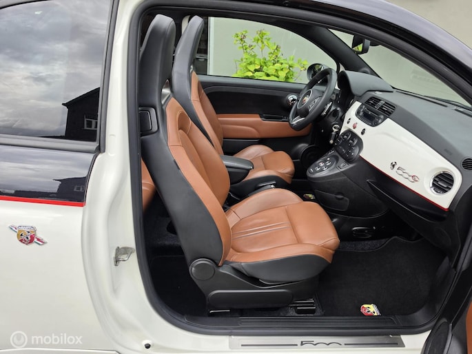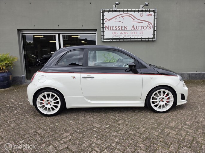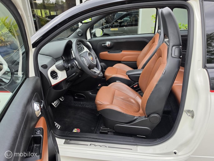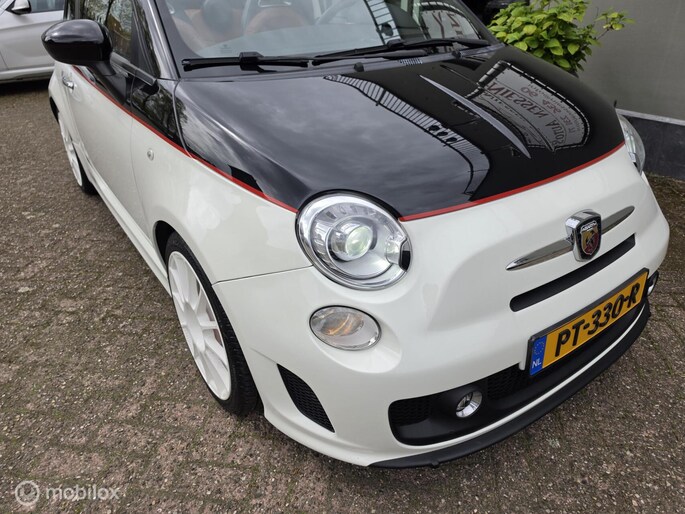 Fiat 500 cabriolet 1.4 16V Abarth Esseesse afkomstig van de 2e eigenaar aangeboden. Het betreft hier een originele Esseesse uitvoering, dit houdt onder andere in dat de Fiat over meer vermogen beschikt (160 pk), speciale lichtmetalen velgen, Geperforeerde remmen rondom, Koni schokdempers met speciale verlagingsveren & om het af te maken is de Fiat origineel voorzien van een Magneti Marelli uitlaatsysteem. De Fiat is uitgevoerd in de prachtige Bicolor kleur Nero Scorpione/Bianco Gara die het samen met de Abarth bumpers en 17 inch witte lichtmetalen velgen een zeer sportieve verschijning maakt. Qua interieur is er gekozen voor een bruin lederen sport interieur & Hoogglans sierlijsten. De complete onderhoudshistorie incl Nationale Autopas (NAP) is aanwezig. Recent is de Fiat voorzien van een onderhoudsbeurt inclusief nieuwe Distributieriem, Waterpomp, Remmen aan de voorzijde & 4 nieuwe Continental banden.