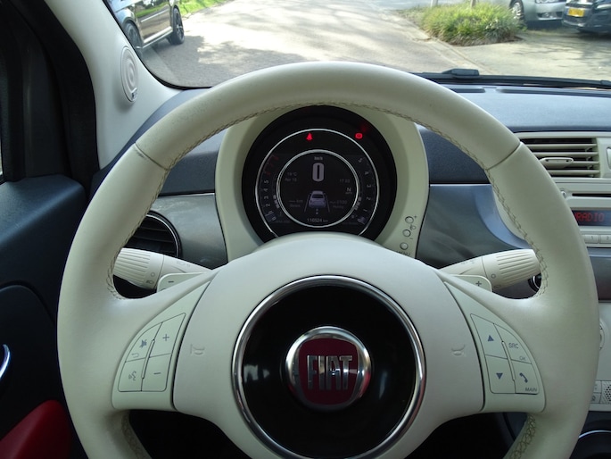 Hij verloochent zijn Italiaanse roots niet, deze Fiat 500 is een genot om te rijden en bovendien een elegante verschijning. De aandrijving van deze Fiat wordt verzorgd door een tweecilinder motor en een automatische transmissie. In weer en wind een cabriosensatie? Dat kan met het riante glazen panoramadak. Met de krachtige xenonverlichting heeft u optimaal zicht in het donker. Bij de zeer complete uitrusting van deze auto behoren ook 16 inch lichtmetalen velgen en in delen neerklapbare achterbank.