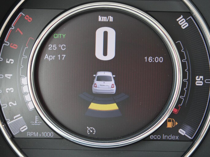 De nieuwste veiligheidssystemen komen in deze Fiat 500 samen. De Brake Assist vergroot de veiligheid door bij een noodsituatie extra power te leveren op het remsysteem.