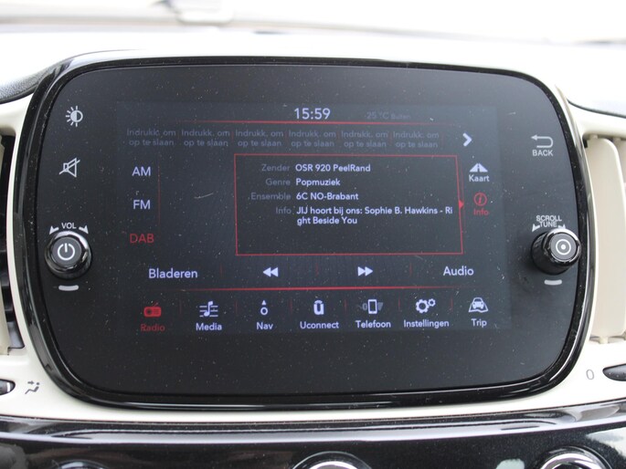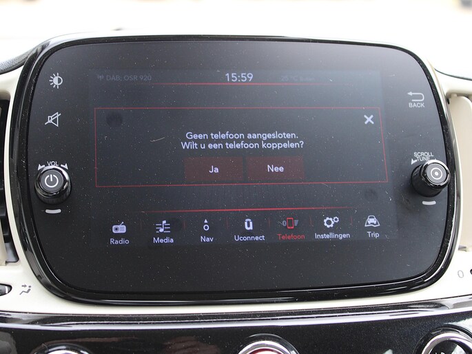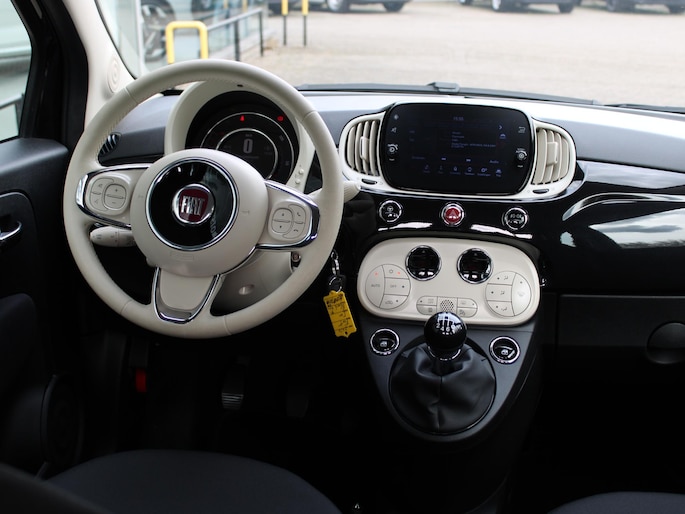 Met het digitale dashboard kunt u de cockpit-interface naar uw voorkeur instellen. U bedient het full map navigatiesysteem en het audio-installatiesysteem met DAB-radio via knoppen op het stuur. Zo kunt u steeds uw aandacht gericht houden op de weg. Bij de luxe van deze auto hoort ook automatische airconditioning. De meeste schade bij inparkeren komt van een randje of paaltje dat u even niet zag. Maar de parkeersensoren zien alles en waarschuwen op tijd. Om de veiligheid onderweg te verhogen, heeft deze Fiat zowel een automatisch inschakelbare verlichting als een regensensor aan boord, zodat hij zelf de verlichting en de ruitenwissers kan inschakelen. U bent in deze Fiat ook voorzien van cruise control, centrale portiervergrendeling, boordcomputer en verstelbaar stuur.