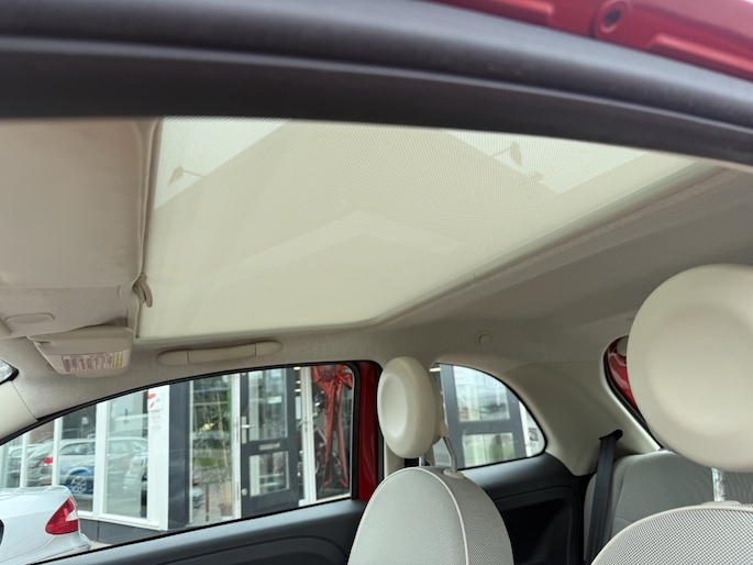 Stap in deze Fiat 500 1.2 en kijk door het glazen dak naar de wolken. Klein, fijn en superleuk om overal mee naartoe te rijden!