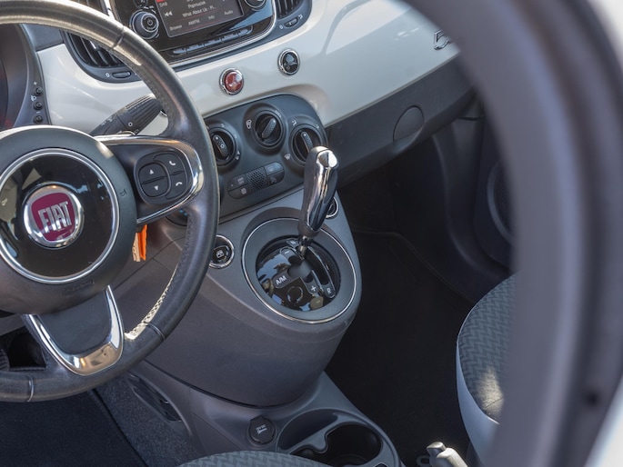 Beautiful Fiat 500 presented in a wel trim level. A pleasant and practical configuration featuring key options such as an automatic transmission, air conditioning, and a steering wheel with gear shift controls.
