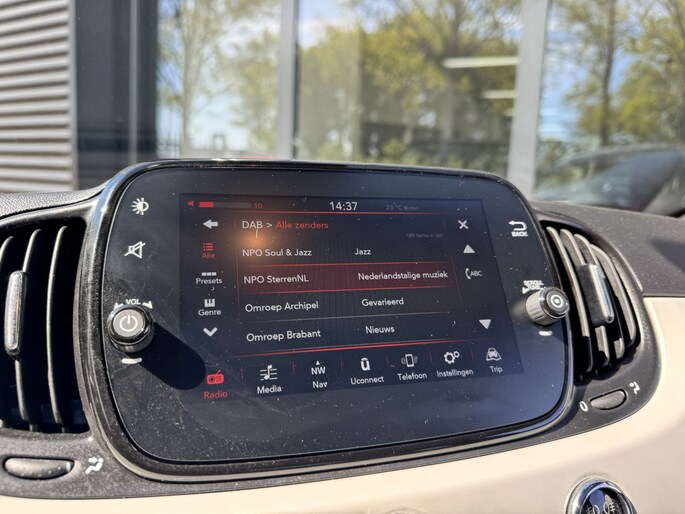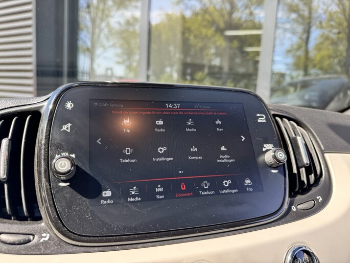 Dankzij hoogwaardige techniek en verschillende veiligheidssystemen, biedt deze Fiat 500 u optimale veiligheid en comfort tijdens iedere rit. De auto heeft een opmerkelijk lage kilometerstand van slechts 39686 Met deze auto is een pittige rijstijl mogelijk, terwijl de motor toch spaarzaam met brandstof omgaat. Het panoramadak zorgt voor zicht, licht en een enorm ruimtelijk gevoel. Bij de zeer complete uitrusting van deze auto behoren ook 15 inch lichtmetalen velgen, LED-dagrijverlichting, donker getint glas achter, in delen neerklapbare achterbank en snelheidsafhankelijke stuurbekrachtiging. Nooit meer de weg kwijt: daarvoor zorgt het onboard navigatiesysteem. Deze Fiat 500 is voorzien van sensoren aan de achterzijde om een achteropkomend verkeer waarschuwing te geven als de afstand tussen u en een achterligger te klein is. De auto is ook uitgevoerd met automatische airconditioning. Een andere zender zoeken of het volume wijzigen? Het audiosysteem heeft bediening op het stuur. Met de DAB-ontvanger luistert u naar glasheldere digitale radio. U bent in deze Fiat ook voorzien van parkeersensoren achter, cruise control, lederen stuur en centrale deurvergrendeling met afstandsbediening.