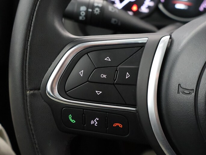 Zodra u naar de 'R' schakelt, gaat de achteruitrijcamera in werking en heeft u een perfect zicht op alles wat zich achter de auto afspeelt. Met spraakbediening of de knoppen op het stuur regelt u het audiosysteem, terwijl u uw blik op de weg gericht houdt. De audio-installatie biedt daarbij glasheldere ontvangst dankzij dab-ontvangst. De automatische airconditioning zorgt voor een behaaglijk klimaat in de auto. Lange stukken vermoeiend? Niet met de cruise control! U bent in deze Fiat ook voorzien van lederen stuur en centrale deurvergrendeling met afstandsbediening.