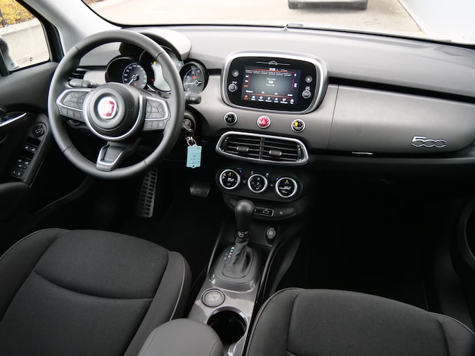 In het moderne verkeer hebt u achter het stuur van de Fiat 500 X altijd de controle. Deze auto komt uit 2024. Deze SUV wordt aangedreven door een krachtige viercilinder motor. Tot de uitrusting van deze Fiat behoren ook 17 inch lichtmetalen velgen, donker getint glas achter, in delen neerklapbare achterbank, verstelbare lendensteunen en snelheidsafhankelijke stuurbekrachtiging.