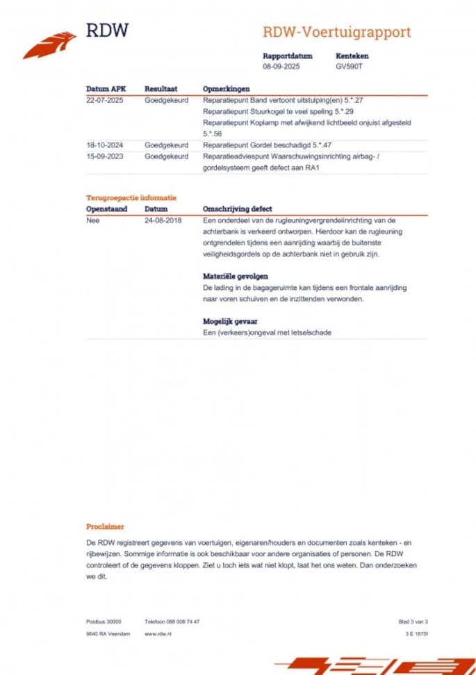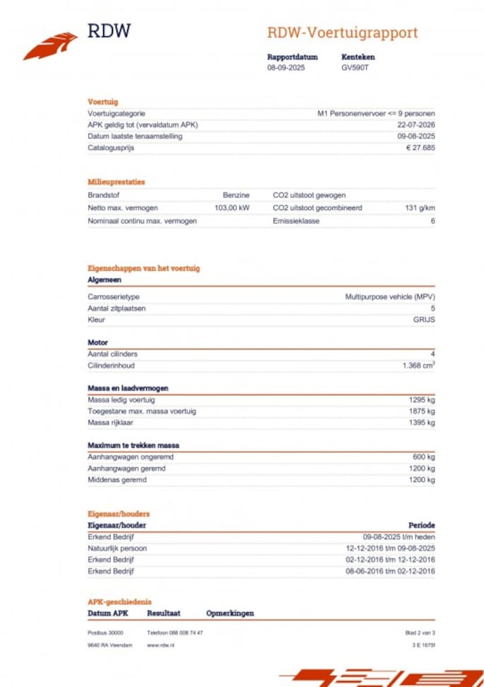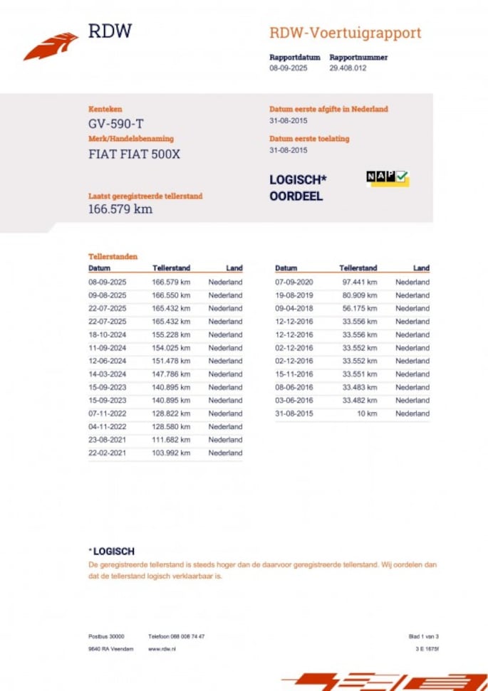 Kilometerstand gecontroleerd