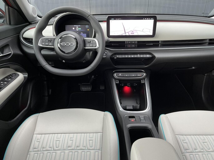 Beleef de unieke sensaties van elektrisch rijden met deze Fiat 600e. CO2-uitstoot? Met de elektromotor rijdt u stil en schoon! Op de teller van deze auto staat slechts 2728 kilometer. Bestuurder en bijrijder krijgen een warm welkom: de verwarmbare voorstoelen zijn bovendien voorzien van massagefunctie. De elektrisch bedienbare achterklep opent met een druk op de knop. Bij de zeer complete uitrusting van deze auto behoren ook 18 inch lichtmetalen velgen, LED koplampen, extra getint glas, in delen neerklapbare achterbank en LED-achterlichten.