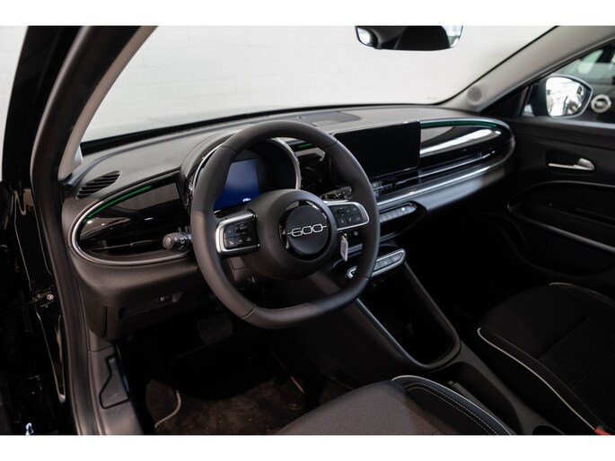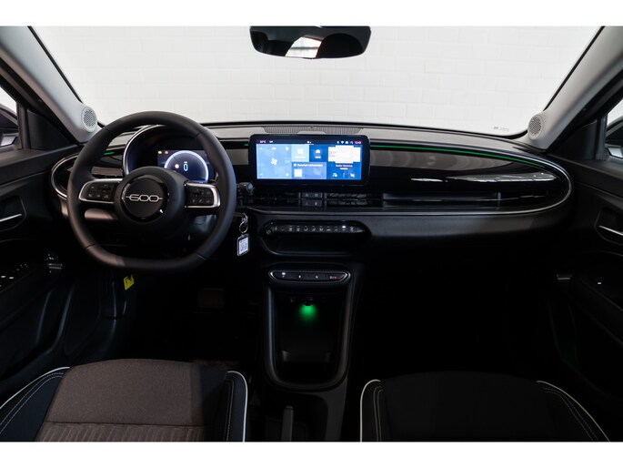 De Fiat 600 is gebouwd met hoogwaardige techniek en maakt het rijden van lange ritten, maar ook korte stukjes, tot een feestje. Deze auto is bijna nieuw, ondanks dat hij uit 2025 komt; hij heeft slechts 4750 kilometer afgelegd. Deze Fiat 600 heeft een hybride motor, dus een combi van brandstof en elektrisch. Een slim en milieuvriendelijk systeem dat ook nog eens lekker kostenbesparend is. De uitmonstering van deze auto wordt gecompleteerd door onder meer 17 inch lichtmetalen velgen, LED koplampen, in delen neerklapbare achterbank en LED-achterlichten. U wordt geïntroduceerd tot de digitale wereld van mobiliteit waarop alles wat u wenst wordt geprojecteerd op het digitale dashboard. Vanaf elke plek contact maken met deze auto: dat kan met behulp van remote services, die u simpel activeert met uw smartphone. Met spraakbediening of de knoppen op het stuur regelt u het audiosysteem, terwijl u uw blik op de weg gericht houdt. De audio-installatie biedt daarbij glasheldere ontvangst dankzij dab-ontvangst. Een plekje vinden in de binnenstad is één, inparkeren is twee. Voor dat laatste heeft deze Fiat 600 prima parkeersensoren die u een handje helpen. De ene neerslag is de andere niet. Dankzij de regensensor krijgt u automatisch precies zoveel wisbewegingen die het zicht nodig heeft. De Fiat is standaard voorzien van: sportstuur met schakelpaddels, cruise control, airconditioning en automatisch dimmende binnenspiegel. Een belangrijk veiligheidssysteem in deze auto is de vermoeidheidsherkenning, die u een duidelijk signaal geeft wanneer u achter het stuur in slaap dreigt te vallen. Bent u nieuwsgierig geworden? Bel ons nu of mail ons voor meer informatie.