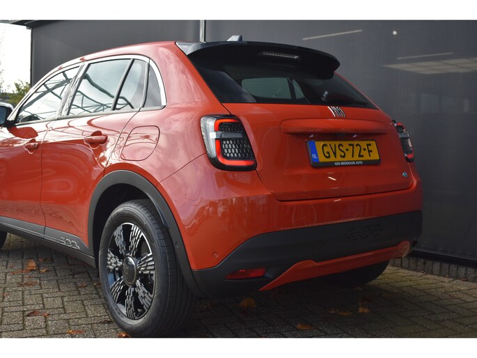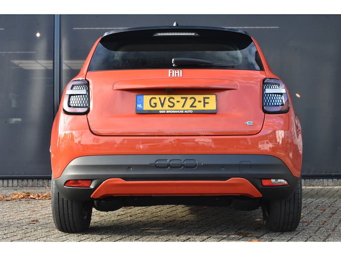 Nooit meer tanken. Een laadkabel volstaat om het accupakket van deze Fiat 600e op te laden. Met zijn krachtige elektromotor biedt deze auto een uitzonderlijk rijgenot. De auto heeft een opmerkelijk lage kilometerstand van slechts 541 Een krachtige motor geeft deze auto zijn sportieve prestaties. Bij de uitrusting van deze Fiat horen onder meer 17 inch lichtmetalen velgen, LED koplampen, in delen neerklapbare achterbank en LED-achterlichten. De slimme lay-out van het digitale dashboard zorgt voor een uitstekend overzicht onderweg. Overzichtelijk en veilig parkeren met de achteruitrijcamera. Overal en altijd. Oliepeil, bandenspanning, sloten en andere functies zijn via een speciale app overal te checken dankzij Connected Services. Tot de standaard uitrusting van deze auto hoort ook automatische airconditioning. De audiobediening op het stuur zorgt dat muziek en informatie kunnen worden aangepast zonder het zicht op de weg te verliezen. En deze auto heeft ook DAB ontvangst, regensensor, cruise control, keyless entry en automatisch dimmende binnenspiegel als standaard uitrusting. Deze Fiat is voorzien van verschillende intelligente veiligheidsvoorzieningen. Ze kijken tijdens het rijden als het ware met u mee, ze signaleren potentieel gevaarlijke situaties en in een aantal gevallen kunnen ze ook ingrijpen. Op lange ritten voorkomt de vermoeidheidsassistent dat uw concentratie afneemt. Dankzij veiligheidsvoorzieningen als dodehoekdetectie, hill hold functie en autonoom remsysteem, bent u steeds veilig onderweg. Wie eenmaal elektrisch heeft gereden, wil niet anders meer. Dus bel ons voor een afspraak en raak in één keer verslingerd!