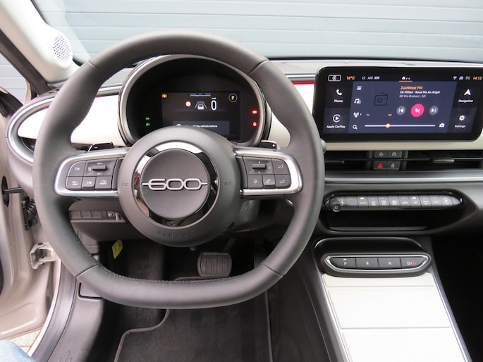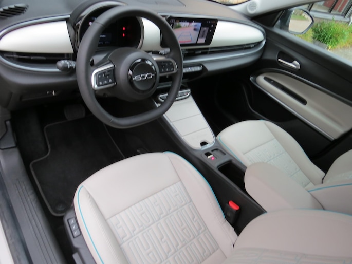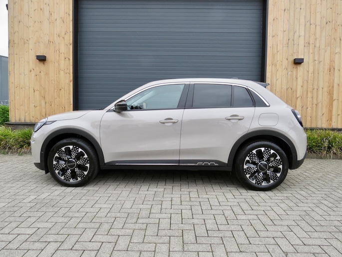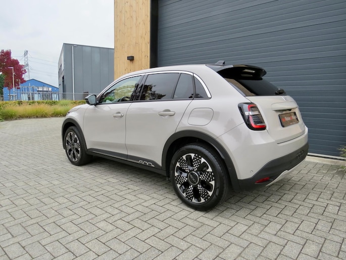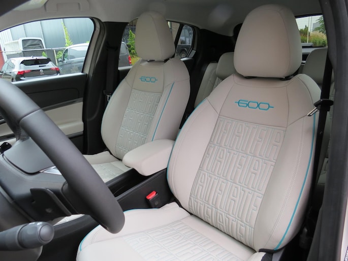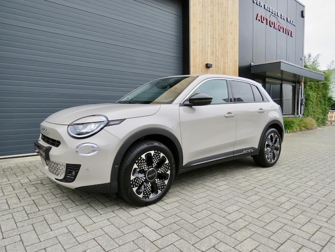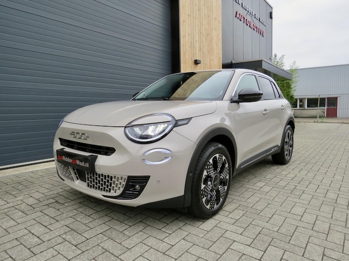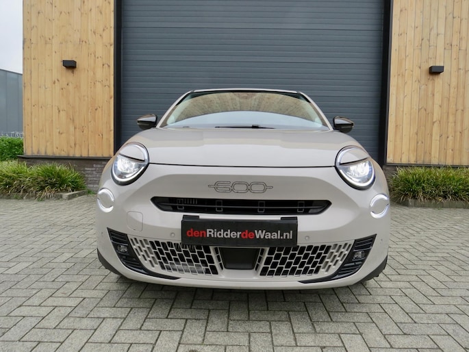Fiat 600 Hybride la Prima bouwjaar 2024 in de luxste uitvoering met lage km stand en fabrieksgarantie. In de unieke kleur Sabbia Earth of Italy. Full option o.a Vol uniek leder interieur, groot Navi/CarPlay scherm, aut airco, parkeer camera 360, stoelverwarming en stoelmassage, 18 inch velgen, adaptieve cruise control, geen stekker laden, uniek gewilde kleur etc. Auto verkeerd in nieuwstaat. onderhoudshistorie en 2 sleutels aanwezig.