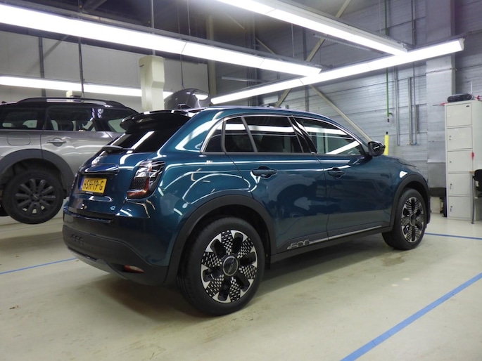Elektrisch rijden is ontspannen rijden. Achter het stuur van deze Fiat 600e kunt u zich in alle rust concentreren op de weg. We hebben het hier over een auto uit 2025, hij heeft 2915 kilometer op de teller staan. Power, stilte en nul procent uitlaatgas krijgt u met de elektromotor. De krachtige motor geeft deze Fiat uitstekende prestaties. Kijk, en die stoelverwarming, dat is nou echt comfort. Helemaal als het buiten winters aanvoelt. De bagageruimte is toegankelijk via een comfortverhogende elektrische achterklep. Ook is de auto voorzien van: 18 inch lichtmetalen velgen, LED koplampen, extra getint glas, in delen neerklapbare achterbank en LED-achterlichten. Het digitale dashboard geeft alle up-to-date info en functies voor een slimme en veilige rit. De achteruitrijcamera laat duidelijk zien hoeveel ruimte u nog heeft bij het inparkeren. Adaptive cruise control is veilig en comfortabel. De snelheidsregelaar houdt automatisch afstand tot het voertuig dat voor u rijdt. Bedient u de auto liever met uw stem? Dan is het goed om te weten dat spraakbediening aanwezig is. Via uw smartphone en Connected Services checkt u eenvoudig de belangrijke functies van de auto, overal en altijd. U bent in deze Fiat ook voorzien van navigatiesysteem, automatische airconditioning, draadloos opladen, DAB ontvangst, regensensor en keyless entry. De Fiat 600e is ook voorzien van ADAS. Deze Advanced Driver Assistence Systems fungeren als extra ogen en oren: ze houden voor u de weg in de gaten en grijpen in wanneer dat nodig is. De camera van de verkeersborddetectie herkent verschillende soorten verkeersborden en toont deze op het dashboard. Met de vermoeidheidsassistent bent u ook op lange ritten veilig op pad. Het systeem geeft een waarschuwing zodra het tijd is voor een pauze. Bovenop deze veiligheidsfeatures heeft deze Fiat bovendien dodehoekdetectie, hill hold functie en autonoom remsysteem. Zuinig, stil, voordelig... de redenen voor elektrisch rijden zijn eindeloos. Maar het meest overtuigend is nog altijd een proefrit. Bel ons voor een afspraak!