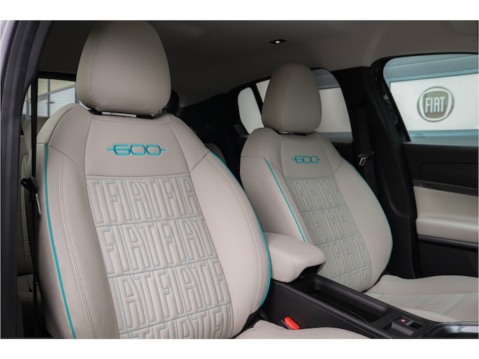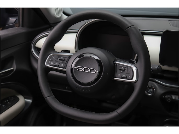 De 600 kent een nostalgisch maar ook minimalistisch design. Het tweespaak stuurwiel, de ivoor kleurige bekleding en ronde koplampen zijn een knipoog naar de originele Fiat 600. Dankzij de comfortabele rijbeleving en hoge instap is de nieuwe Fiat 600 een perfecte keuze voor alle leeftijden. De Fiat 600 is voorzien van innovatieve techniek zoals een digitale cockpit, adaptieve cruise control, parkeercamera en een 10inch infotainment scherm met navigatie en draadloos carplay. Het ruime interieur biedt eenvoudig plek voor vier volwassenen en met een kofferbak ruimte van 360 liter is de 600 tevens een perfecte gezinsauto.