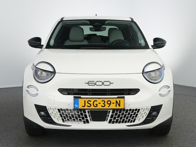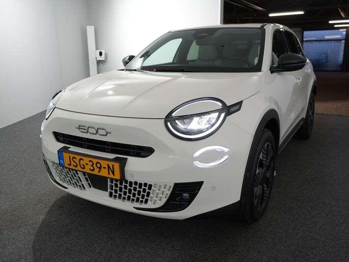 Geniet van het rijplezier dat alleen een Italiaanse auto u kan bieden. Op de teller van deze auto staat slechts 512 kilometer. Deze Fiat 600 heeft een hybride motor, dus een combi van brandstof en elektrisch. Een slim en milieuvriendelijk systeem dat ook nog eens lekker kostenbesparend is. Op koude en donkere dagen zijn de verwarmbare voorstoelen een uitkomst. En ze hebben een massagefunctie bovendien. Met een druk op de knop gaat de elektrische achterklep open. Bij de uitrusting van deze Fiat horen onder meer 18 inch lichtmetalen velgen, LED koplampen, extra getint glas, in delen neerklapbare achterbank en LED-achterlichten. Begeef u op de geweldige rit door de digitale wereld van mobiliteit waar alles wat u wenst voor comfort en veiligheid, wordt geprojecteerd op het digitale dashboard. Onder alle omstandigheden perfect zicht op wat zich achter de auto afspeelt: de achteruitrijcamera zorgt ervoor! Adaptive cruise control is veilig en comfortabel. De snelheidsregelaar houdt automatisch afstand tot het voertuig dat voor u rijdt. Locatie, motorconditie, storingen... via Connected Services krijgt u alle vitale info over de auto door. Ook handig bij pech! U kunt tijdens de rit uw ogen steeds op de weg houden, want het audio-installatiesysteem (met dab!) en het navigatiesysteem kunt u bedienen vanaf het stuur. En dan is deze auto ook nog eens voorzien van automatische airconditioning, sportstuur met schakelpaddels, draadloos opladen, regensensor, keyless entry en automatisch dimmende binnenspiegel. Pragmatisch en veilig als deze auto is, beschikt hij over diverse veiligheidssystemen. De actuele snelheidslimiet, een inhaalverbod en andere verkeersborden. De verkeersborddetectie ondersteunt u tijdens elke rit. Vermoeidsheidsherkenning herkent tekenen van vermoeidheid bij de bestuurder. Het systeem voorkomt dat er ongelukken gebeuren doordat de bestuurder in slaap valt. In deze Fiat vinden we verder een dodehoekdetectie, hill hold functie en autonoom remsysteem. Als u wilt, kunt u al snel rijden met uw nieuwe 600. Onze verkoopadviseurs staan klaar om u de auto te laten zien. Dan leggen ze u meteen uit welke financieringsvormen we erbij kunnen aanbieden. Tot ziens in onze showroom!