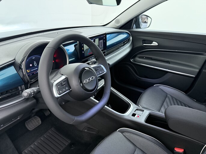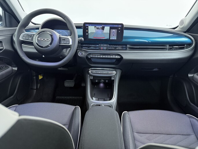 Natuurlijk, dit is een innovatieve auto met zijn hybridetechniek. Maar het is bovendien ook een auto die is gebouwd voor jarenlang rijcomfort. Deze nieuwe auto is nu uit voorraad leverbaar. Deze Fiat 600 is voorzien van een hybride motor. Dat betekent dat de aandrijving wordt geleverd door zowel een brandstofmotor als een elektromotor, die slim samenwerken om zuinig over de weg te gaan. Bij de rijke uitrusting horen ook LED koplampen, in delen neerklapbare achterbank en LED-achterlichten. Nooit meer te warm of te koud. De automatische airconditioning zorgt altijd voor de temperatuur die u kiest. U kunt bij het inparkeren natuurlijk niet aan alle kanten ogen hebben. Daarom is deze Fiat 600 voorzien van parkeersensoren! Slimme ruitenwissers? De regensensor zorgt ervoor! De voordelen van de aanwezige cruise control hoeven we niet uit te leggen. Een mooie, constante snelheid - niet te snel, niet te langzaam. Precies goed. Een prettige optie is de keyless entry, die ervoor zorgt dat de Fiat 600 automatisch van het slot gaat als u dichtbij komt. Vermoeidsheidsherkenning neemt tekenen van vermoeidheid waar bij de bestuurder. Het systeem voorkomt dat er daardoor ongelukken gebeuren. We hebben ons best gedaan om de kwaliteit van deze 600 aan u uit te leggen, maar er gaat toch niets boven een proefrit. Als u contact met ons opneemt, zetten we de auto voor u klaar. We horen graag van u.