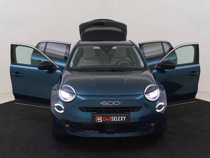 Geniet van het rijplezier dat alleen een Italiaanse auto u kan bieden. Dit is een Fiat 600, het bouwjaar is 2025 en de kilometerstand is 25722. Op een dag rijden we allemaal elektrisch. Maar voor nu is de hybride oplossing van elektrisch en benzine ideaal! Zo ook bij deze Fiat 600. Deze Fiat 600 legt bestuurder én bijrijder compleet in de watten. De verwarmbare voorstoelen zijn voorzien van massagefunctie. De elektrische achterklep opent met een druk op de knop, zodat u gemakkelijk toegang heeft tot de bagageruimte. Bij de zeer complete uitrusting van deze auto behoren ook 18 inch lichtmetalen velgen, LED koplampen, donker getint glas achter, in delen neerklapbare achterbank en LED-achterlichten.