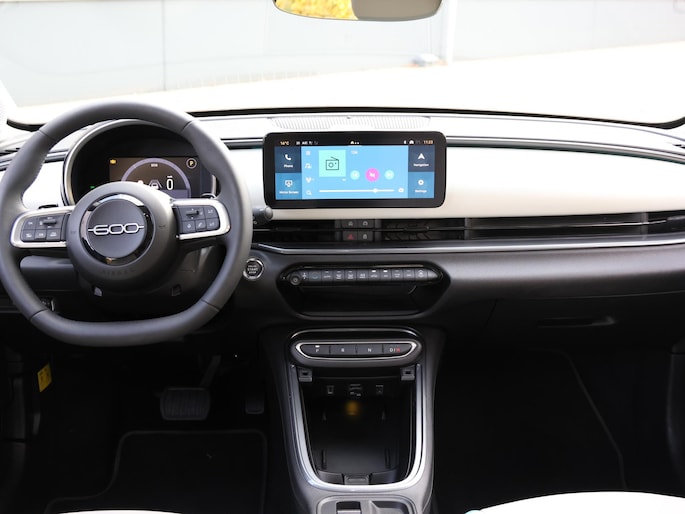 Deze Fiat 600 is van de jongste generatie. Prestaties, brandstofverbruik - alles helemaal van nu. Mét al wat kilometers op de teller. Een nieuw model, maar onder de nieuwprijs! De auto heeft een opmerkelijk lage kilometerstand van slechts 5543 De aandrijving van deze Fiat wordt verzorgd door een driecilinder benzinemotor en een automatische transmissie. 's Winters op pad gaan kan een behoorlijke uitdaging zijn. Daarom is deze Fiat 600 voorzien van weldadige verwarmbare voorstoelen. Een handige voorziening op deze auto is de elektrische achterklep die u op afstand kunt openen. De uitmonstering van deze auto wordt gecompleteerd door onder meer 18 inch lichtmetalen velgen, LED-dagrijverlichting, extra getint glas, in delen neerklapbare achterbank en LED-achterlichten.