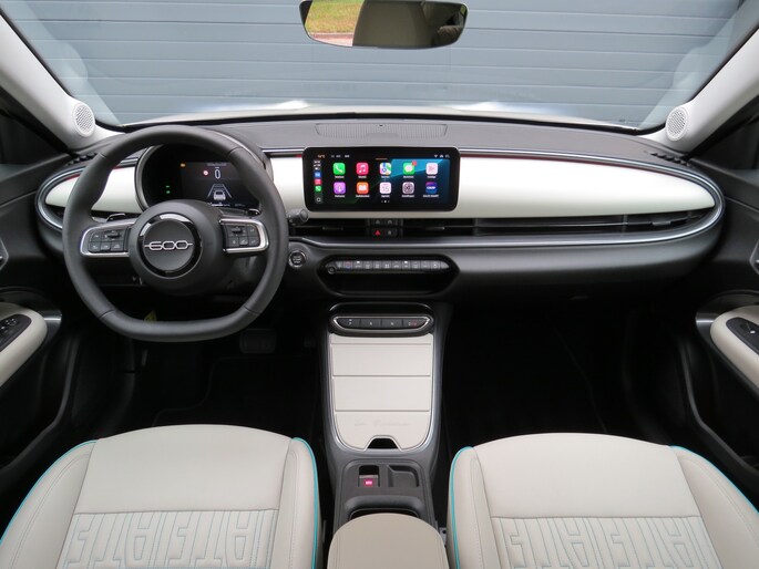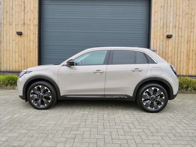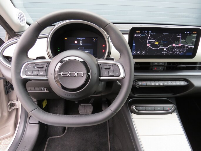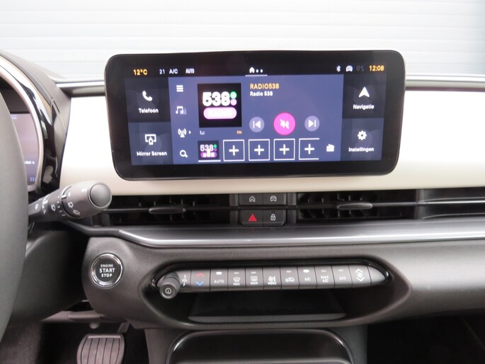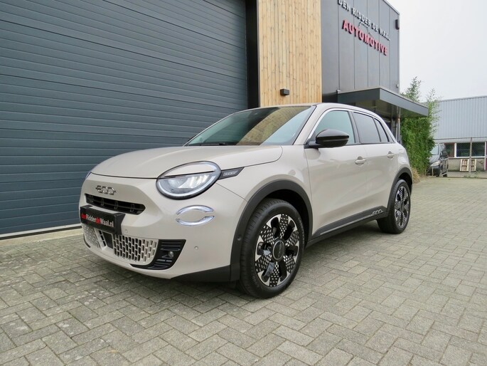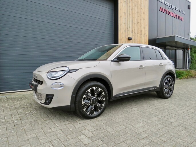 Fiat 600 Hybride la Prima bouwjaar 2024 met 136 PK in de luxste uitvoering met lage km stand en fabrieksgarantie. In de unieke kleur Sabbia Earth of Italy. Full option o.a Vol uniek leder interieur, groot Navi/CarPlay scherm, aut airco, parkeer camera 360, stoelverwarming en stoelmassage, 18 inch velgen, adaptieve cruise control, geen stekker laden, uniek gewilde kleur etc. Auto verkeerd in nieuwstaat. onderhoudshistorie en 2 sleutels aanwezig.
