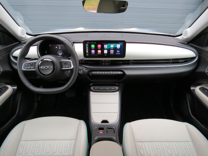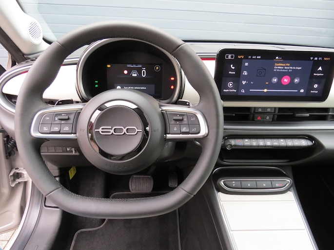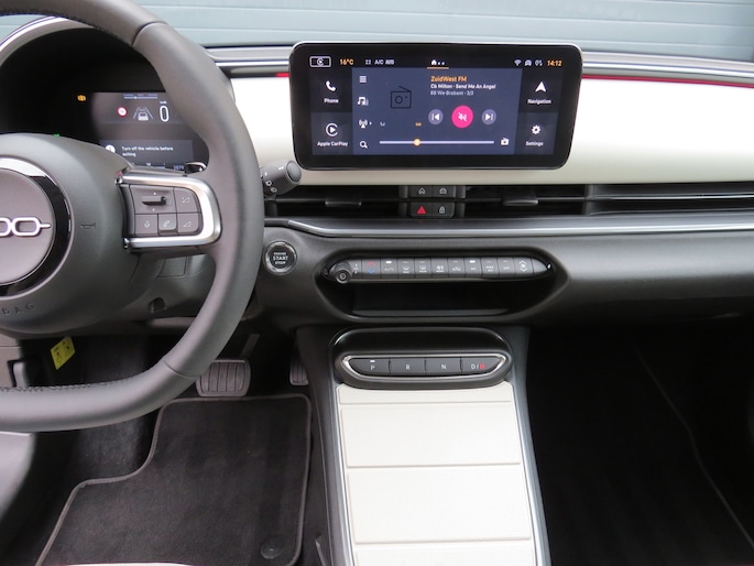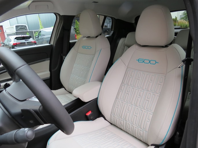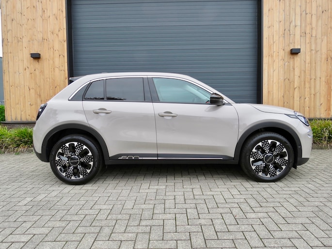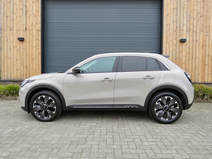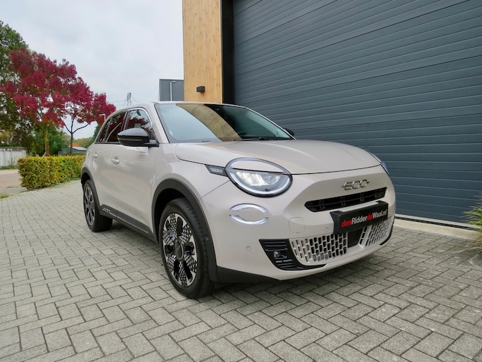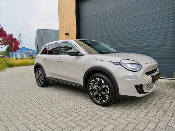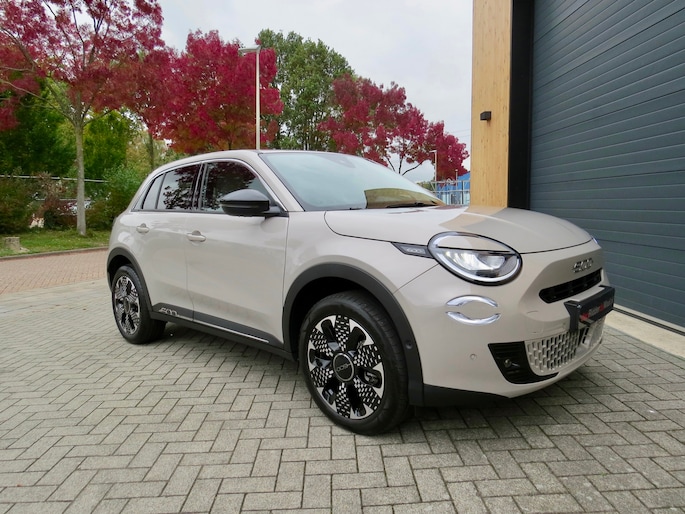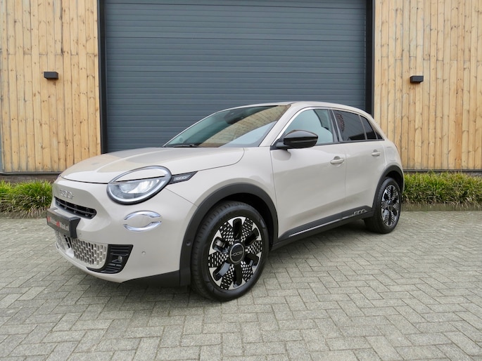 Fiat 600e la Prima bouwjaar 2025 in de luxste uitvoering met lage km stand en fabrieksgarantie. In de unieke kleur Sabbia Earth of Italy. Full option o.a Vol uniek leder interieur, groot Navi/CarPlay scherm, aut airco, parkeer camera 360, stoelverwarming en stoelmassage, 18 inch velgen, adaptieve cruise control, groot rijbereik circa 400 km, uniek gewilde kleur etc. Auto verkeerd in nieuwstaat. onderhoudshistorie en 2 sleutels aanwezig.