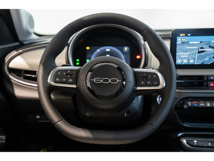 Met zijn inventieve techniek is de hybride Fiat 600 tegelijk comfortabel en zuinig met brandstof. Dit exemplaar is van het bouwjaar 2025, hij heeft 100 kilometer op de teller staan. De aanwezige hybride motor is een slimme extra. Tijdens het rijden en remmen laadt de accu bij, zodat de elektromotor de brandstofmotor kan ondersteunen of het zelfs helemaal overnemen. Dat scheelt in kosten! Doe maar luxe! Neem plaats in de verwarmbare voorstoelen en voel hoe de massagefunctie zorgt voor verfrissende doorbloeding op de lange ritten. De elektrisch bedienbare achterklep opent met een druk op de knop. Bij de zeer complete uitrusting van deze auto behoren ook 18 inch lichtmetalen velgen, LED koplampen, extra getint glas, in delen neerklapbare achterbank en LED-achterlichten. Overzicht, informatie en functionaliteit: dat biedt het digitale dashboard. U ziet geen paaltje meer over het hoofd dankzij de achteruitrijcamera. Met adaptive cruise control houdt deze auto automatisch afstand tot uw voorligger. Handig en veilig: Connected Services. Alle vitale functies en data van de auto checkt u via de app op uw smartphone. Ook praktisch: deze auto is voorzien van een eigen navigatiesysteem. Wat u ook in deze auto kunt vinden zijn automatische airconditioning, sportstuur met schakelpaddels, draadloos opladen, DAB ontvangst, regensensor en keyless entry. Het zal u verbazen hoe deze auto in staat is om voor u de omgeving en het verkeer om u heen in de gaten te houden. U rijdt ook veiliger omdat deze auto voor u de verkeersborden langs de weg kan lezen. De belangrijkste borden worden op uw instrumentarium geprojecteerd, zodat u ze niet kunt missen. Bij concentratieverlies en toenemende vermoeidheid van de bestuurder, geeft de auto een sterk signaal om u weer bij de les te houden. Hierdoor kunnen veel ongelukken voorkomen worden. Dankzij veiligheidsvoorzieningen als dodehoekdetectie, hill hold functie en autonoom remsysteem, bent u steeds veilig onderweg. Als u wilt, kunt u een proefrit maken met deze Fiat 600. Bel of mail ons nu voor een afspraak.