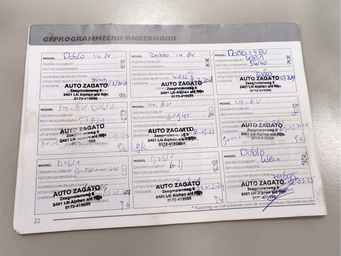 Het gebeurt niet vaak dat we een Fiat Doblò te koop hebben, maar als we er eentje binnenkrijgen in de staat zoals dit exemplaar, kunnen we het niet over ons hart krijgen om de auto af te staan aan de handel. Zeer nette, perfect onderhouden Doblò die zijn hele leven in onderhoud is geweest bij Italiaanse autospecialist Auto Zagato in Alphen. Dit exemplaar heeft een lage kilometerstand, een ijskoude airconditioning, uitstekende banden en een 2-jaar geleden vervangen distributieriem. Wij leveren deze origineel Nederlandse Doblò met NAP aan u af incl. beurt, nieuwe APK, volle tank en 3 maanden garantie!