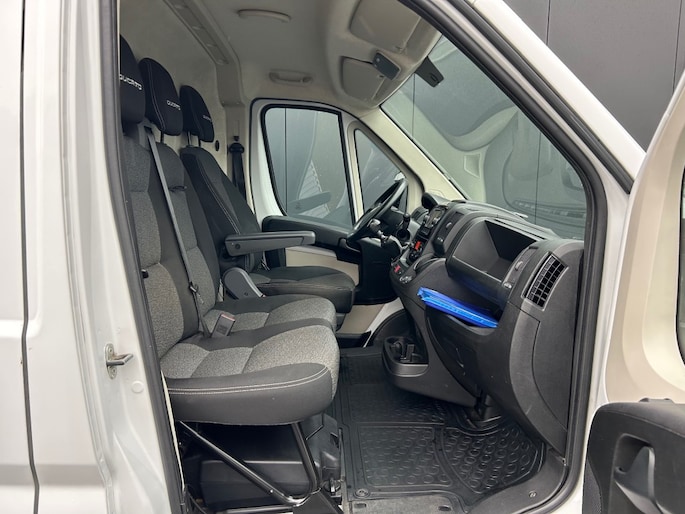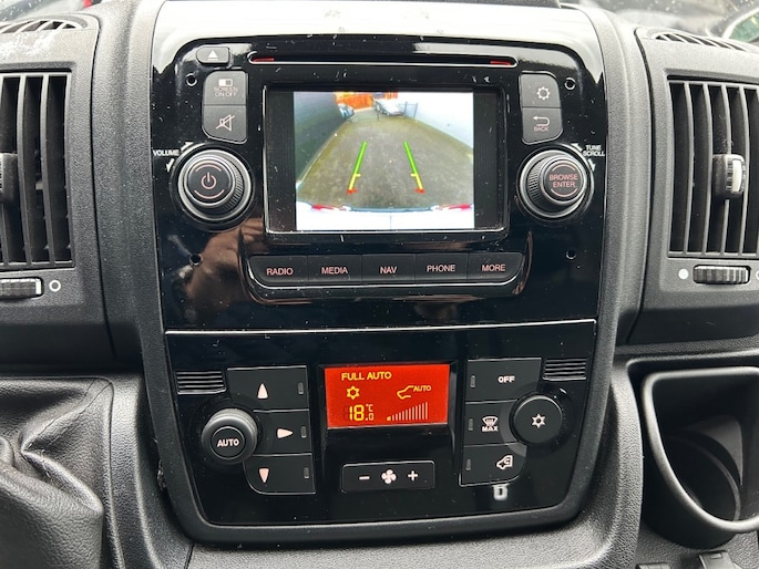 Keurige Fiat Ducato 2.0 MultiJet 3-zits voorzien van navigatie full map, achteruitrijcamera, cruise control, parkeersensoren, MAxxFan dakventilator met afstandsbediening, automatische airco en trekhaak 2.000kg.