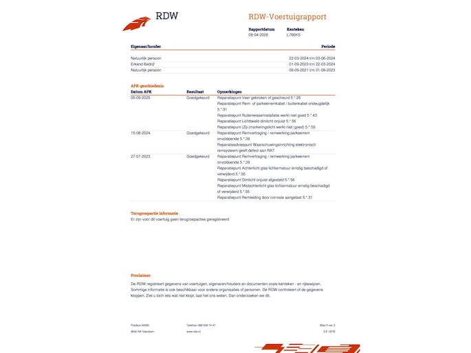 - APK minimaal 6 maanden geldig