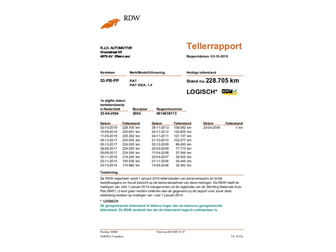Kilometerstand gecontroleerd