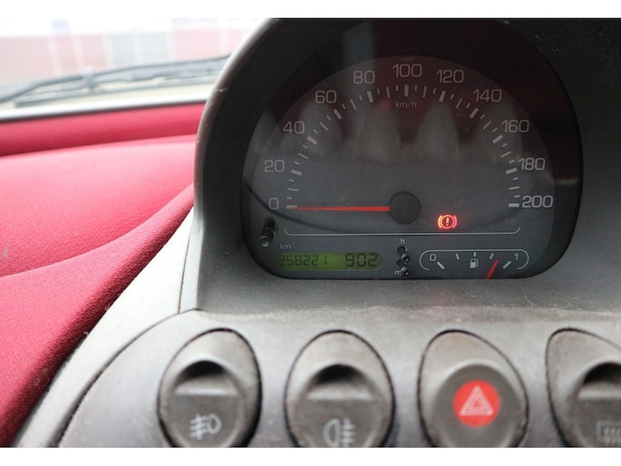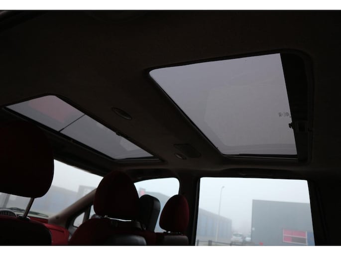 De uitvoering is uniek te noemen, met sportpakket, 15 inch lichtmetaal velgen, dubbel elektrisch schuifdak, airconditioning, koplampsproeiers, trekhaak en leuke kleurstelling zwart metallic met rood stof. Verder standaard ook getint glas, elektrische bedienbare ramen en spiegels, cpv met afstandsbediening, stuurbekrachtiging, dubbele airbags en ABS.