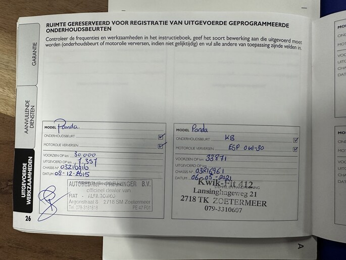 Onderhoudsboekjes: Aanwezig