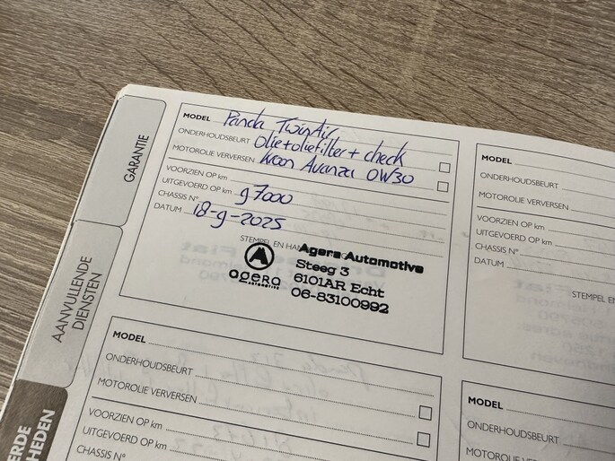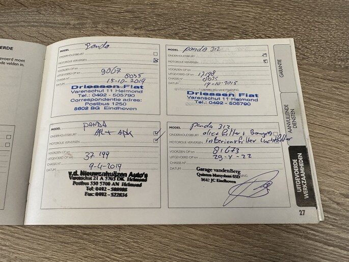 Onderhoudsboekjes: Aanwezig