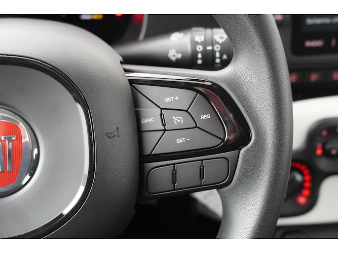Geavanceerde technische systemen houden tijdens elke rit het verkeer in de gaten en reageren op potentieel gevaarlijke situaties. Bij de veiligheidssystemen van deze auto hoort ook de verkeersbord-detectie. Die leest tijdens het rijden als het ware met je mee en attendeert je op de significante verkeersborden langs en boven de weg. Deze Fiat Panda is ook behulpzaam als het gaat om een rechte koers. Het Lane-keeping systeem signaleert en corrigeert als je onbedoeld de rijstrooklijnen dreigt te overschrijden. Vermoeid achter het stuur zitten vergroot de kans op een ongeval. Vermoeidheidsherkenning waarschuwt tijdig als je aan een rustpauze toe bent. Verder is deze auto uitgerust met autonoom remsysteem en bandenspanningcontrolesysteem.