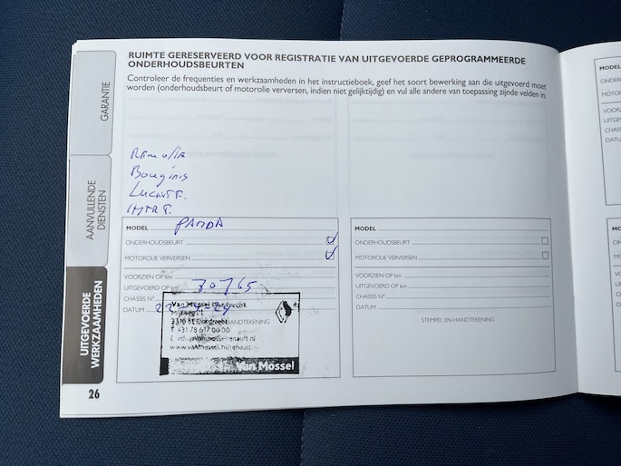 Onderhoudsboekjes: Aanwezig