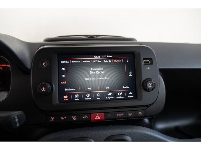 U zoekt een betrouwbare auto met uitstekende rijkwaliteiten? Dan is deze Fiat Panda een geweldige keuze! Rijden met deze Fiat Panda is energiezuinig, want de hybride motor combineert brandstof met elektriciteit. Minder vaak langs de pomp, dus dat scheelt! In deze auto profiteert u onder andere ook van: LED-dagrijverlichting, extra getint glas en neerklapbare achterbank. Een belangrijke veiligheidsvoorziening is de bediening van het audiosysteem via knoppen op het stuur. Dab-ontvangst geeft daarbij een kraakheldere ontvangst. Bij de luxe van deze auto hoort ook automatische airconditioning. De parkeersensoren vertellen precies hoe ver u kunt gaan. Hoe dichter op een obstakel, hoe sneller de piepjes. Achter het stuur van deze Fiat bent u niet alleen. De auto kijkt als het ware met u mee tijdens de rit. De regensensor schakelt de ruitenwissers in als het nodig is en de automatisch inschakelbare verlichting doet de lichten voor u aan. De Fiat is standaard voorzien van: centrale deurvergrendeling met afstandsbediening en verstelbaar stuur. De nieuwste veiligheidssystemen komen in deze Fiat Panda samen. Heeft u interesse? Laat het ons dan zo snel mogelijk weten, dan kunnen we deze Fiat voor een proefrit reserveren.