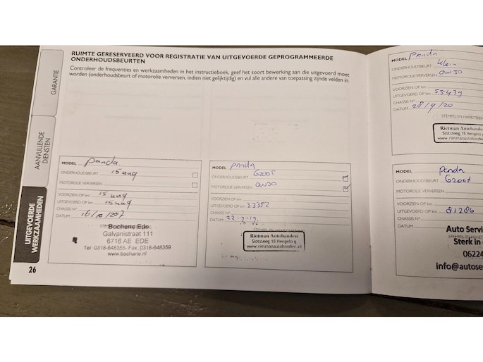 Onderhoudsboekjes: Aanwezig