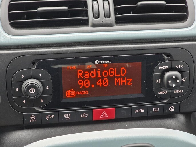 - Uconnect Radio met Bluetooth, MP3/USB met 4 speakers en verwijderbare smartphone cradle op het dashboard