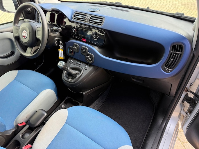 De Automannen bieden aan: een keurige en complete Fiat Panda 0.9 TwinAir 86 pk Turbo in Lounge uitvoering, voorzien van Airconditioning, Fiat Audio CD, Elektrische ramen voor, Centrale vergrendeling met afst.bediening, 5 zitplaatsen, een fris interieur in blauw en grijs.