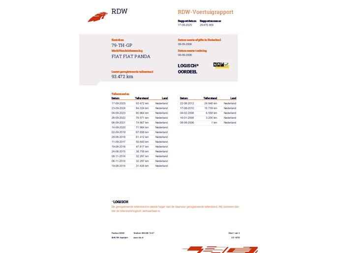 Kilometerstand gecontroleerd